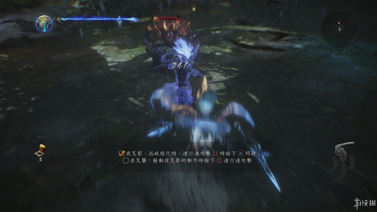 夜叉影:進行快速攻擊□時按下×能迅速閃避。