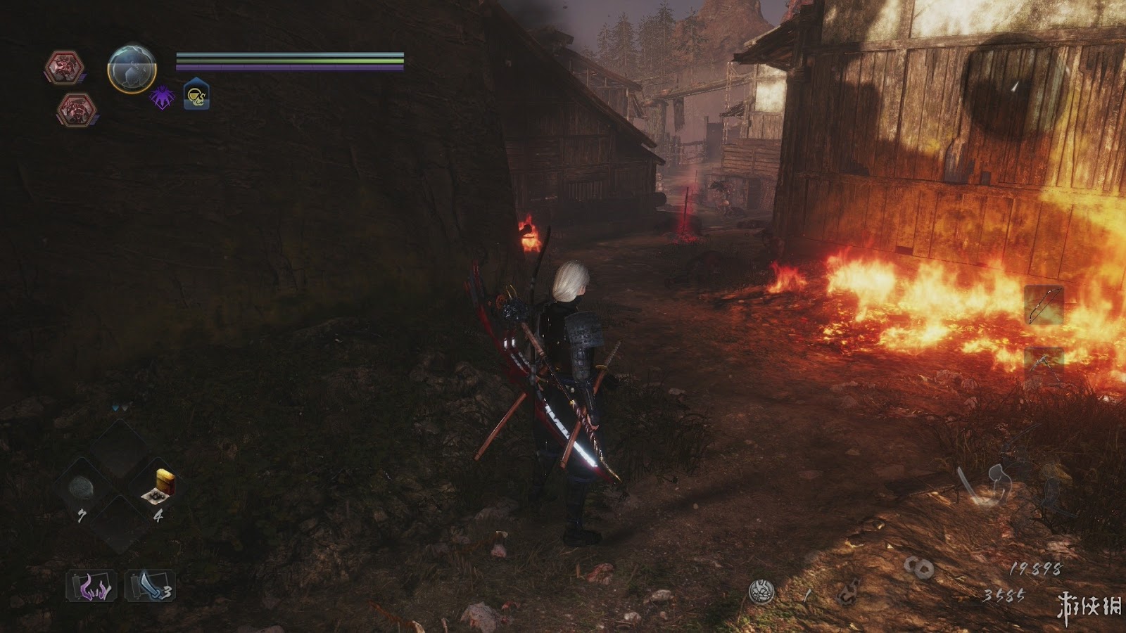 順著路繼續前進,左側的屋子裡有一個手持雙斧的敵人,在遠處時他會投擲斧頭進行攻擊。