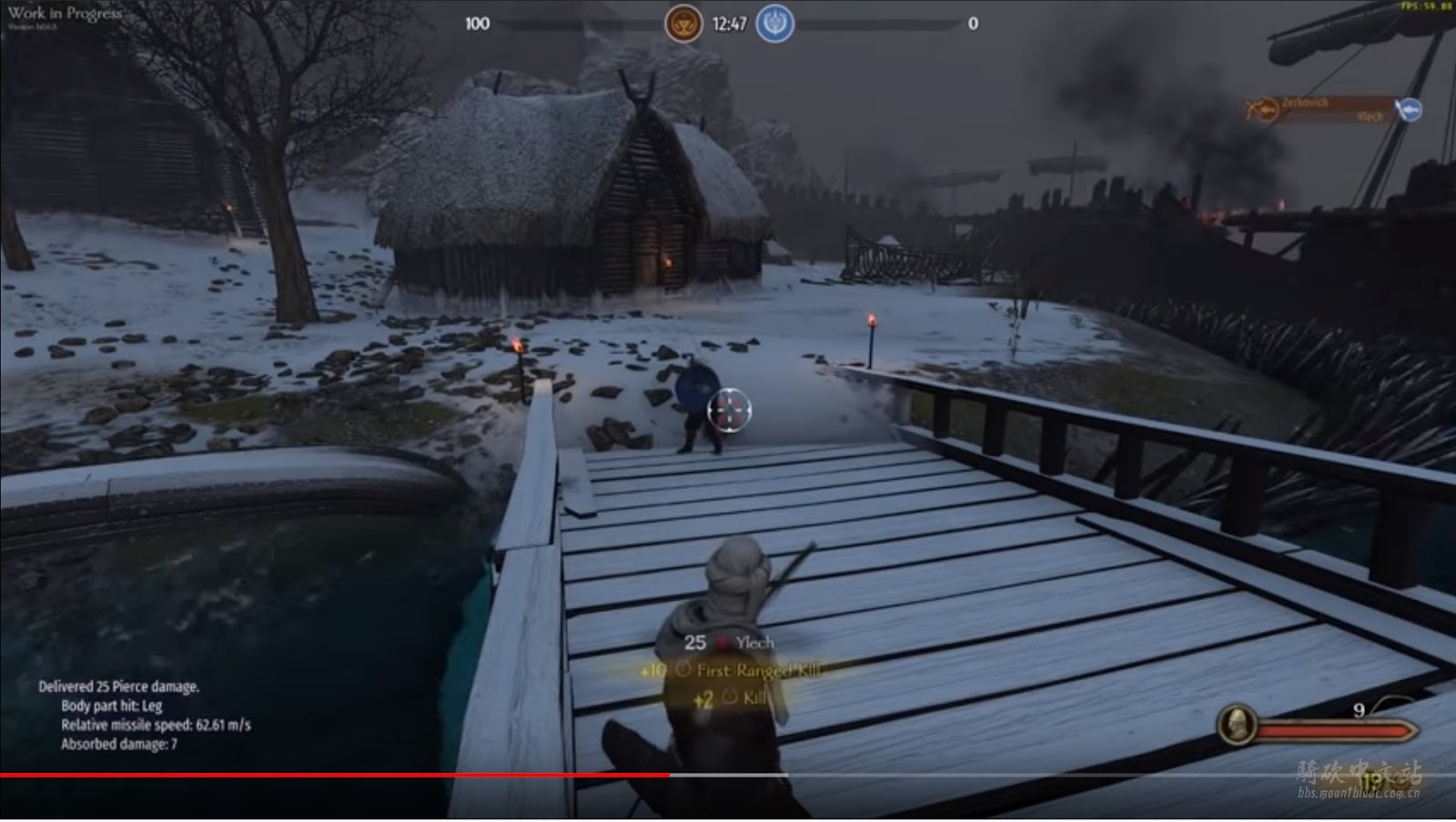 2.相對速度:這個也是騎砍的戰鬥核心機制之一,你在遊戲中和敵方的相對速度會對傷害有巨大的影響,這也衍生出了很多技巧。比如跳起來上砍,利用下落的速度來加大傷害;扭腰砍,通過加長武器運動距離來提速造成巨大傷害,常見於雙手斧類型的中心偏外武器;拒馬槍,利用敵方騎兵沖過來的速度找準時機刺,能充分利用敵方的速度;還有最最基本的往左走從右側揮刀砍和往右走從左側揮刀砍,其實只要玩家把騎砍的世界想像成真實世界就不難理解了。所以在追擊敵方或是邊退邊打的時候傷害往往會比較低,而兩軍對沖的時候螢幕上會瘋狂刷死傷資料就是這個道理。這裡需要注意的是對投擲物和弓弩來說相對速度也是存在的,所以你迎著箭矢仰攻或是沖向對面投擲手時很可能被對方一擊斃命。其實蓄力階段本質上也是通過最終提升進攻動作的速度來達到傷害提升的目的的,玩家在遊戲中應該也能明顯感覺到吧。