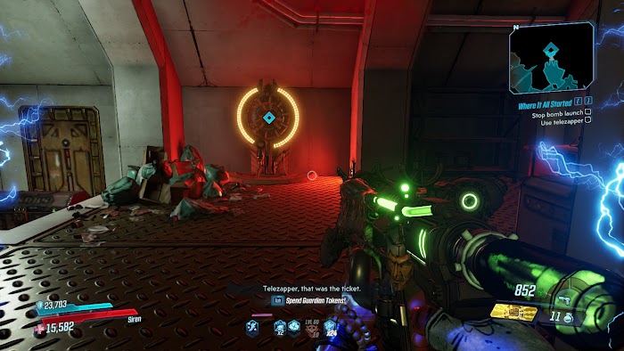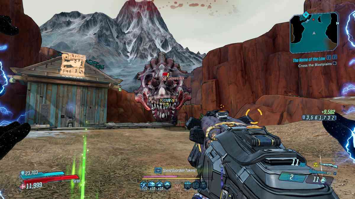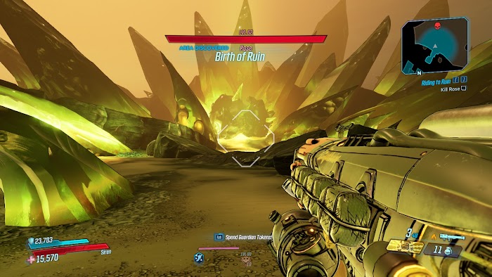 這boss一管紅血不鎖血,講道理呢打到一定階段會鑽地。似乎需要進傳送門。但是在boss還剩2/3血的時候,開始吐綠色鐳射,在鐳射打到我的一刹那,我切到彈射迴圈開了幾槍。等光污染褪去的時候boss已經死了。