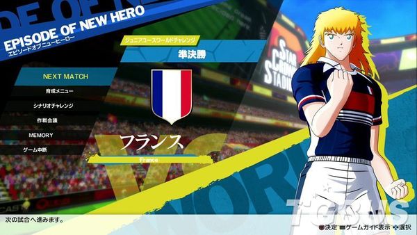 法國的拿破崙和皮耶爾這兩個選手的射門很猛。此外,下半場後衛尚的緊密防守會導致我方不易發揮。儘量在上半場得分,下半場留好V ZONE量表來應對敵人的必殺射門吧。