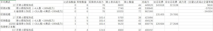無騎士加成時,輕騎被克制到只發揮0.2傷害以下,全建軍校比全建比武場好。