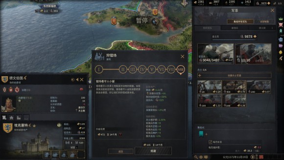 持有6個公爵領的公爵首府,並且持有6個公爵領頭銜並全部加上選舉繼承制。這樣的好感度懲罰是4*15-6*10剛好抵消,這是目前主流的六公爵直轄法。