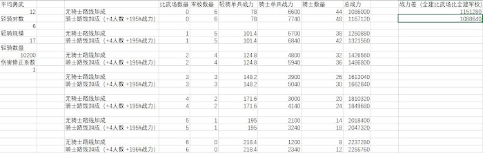 最強騎士加成時,輕騎被克制到只發揮0.44傷害以下,全建軍校比全建比武場好。