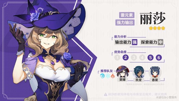 低命座麗莎輸出能力強於多數4星,滿命座麗莎值5星,推薦培養。