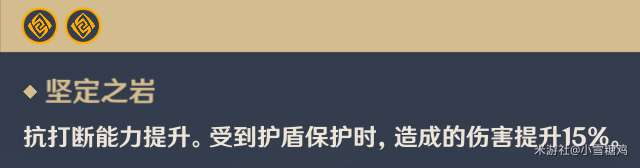 岩主前期可以和諾艾爾組進一隊,觸發元素共鳴【堅定之岩】,諾艾爾元素戰技的護盾和岩主高頻星隕劍結晶反應生成的護盾可以為全隊提供15%的全程加傷,還可以大量減少角色受到的傷害。