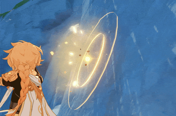 岩元素是一種特殊的元素,它與其他元素(火、雷、冰、水)的反應不是造成傷害或者附著元素,而是生成護盾,這種反應被稱作“結晶”,如下圖所示: