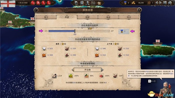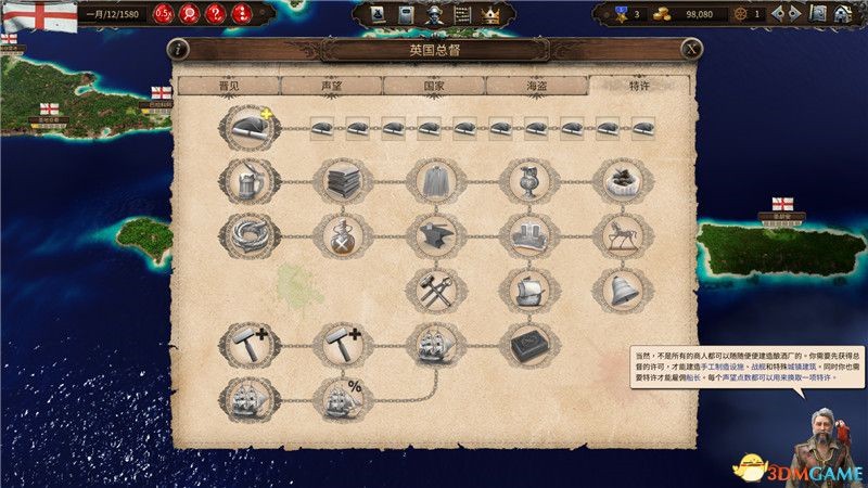 總督聲望得到提升後,你就能拿到更多的特權,也就能夠解鎖更多的許可證。