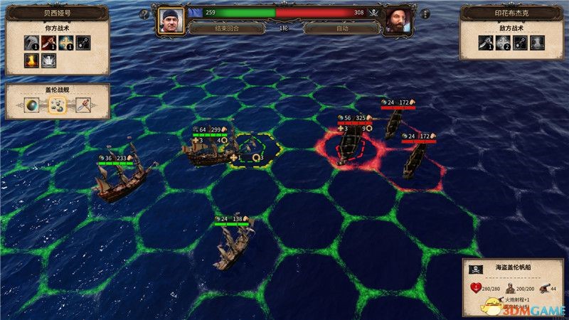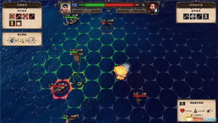 規則很簡單,每個船有自己的行動點,這取決於船的好壞和船長的屬性能力。