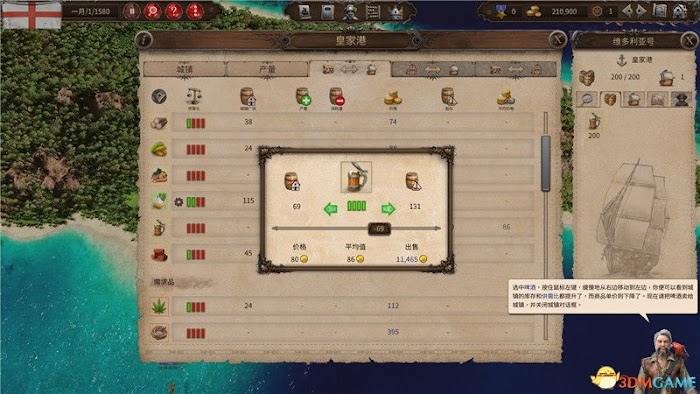 按照指揮官的要求,首先將船上的200桶朗姆酒投入市場。