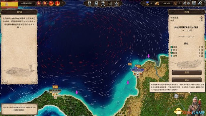 注意,地圖的縮放比越高,商船運行的速度就越快。