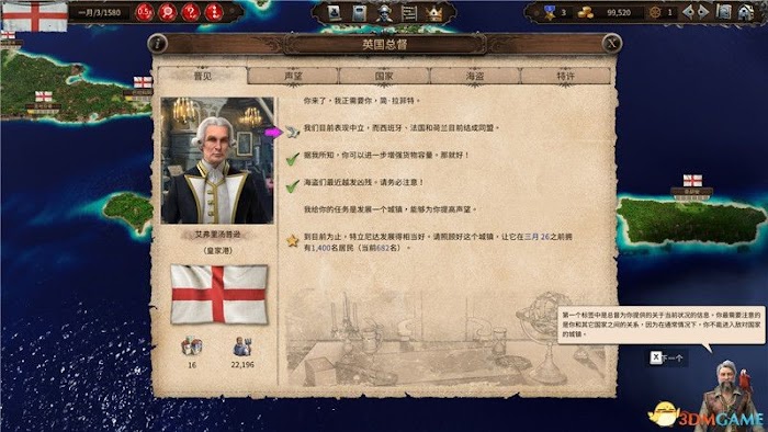 根據遊戲自帶的教程,你可以很好的掌握《海商王4》的絕大多數遊戲元素和操作規則。