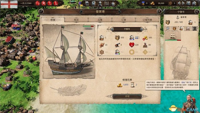 每次商船回來之後,都會有一定的損傷,你可對其進行維修,但這需要消耗至少1天時間。