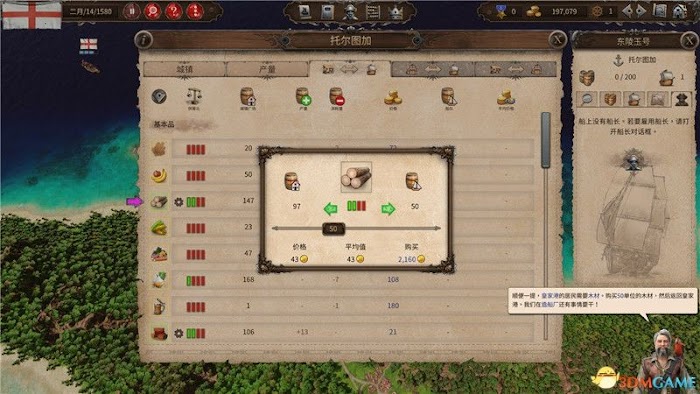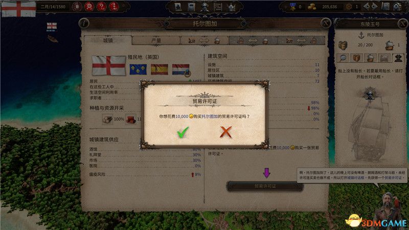 當商船到達目的地之後,你還需要購買一張貿易許可證,才能進行買賣交易。