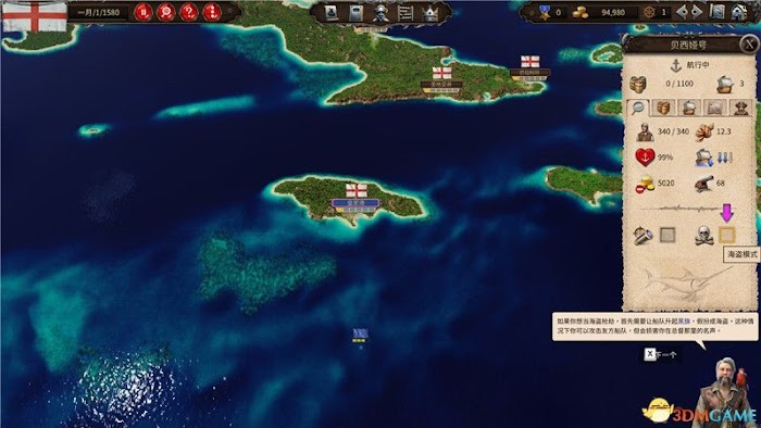當你使用商船在大海上漫遊時,你可以選擇“巡航”模式或“海盜”模式。