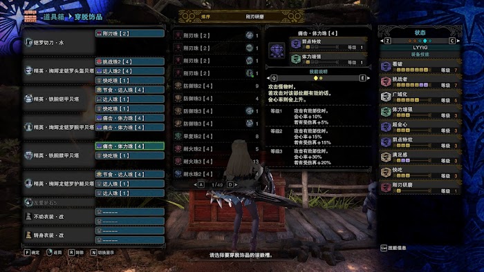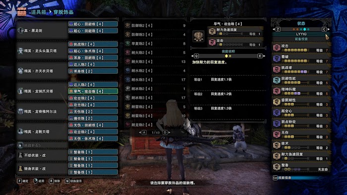 那麼奶片怎麼配裝呢?很簡單,護石換成廣域5,回避和加護換成快吃和滿足感,其他輸出技能拉滿。我理解的奶片定位和奶笛不一樣,奶片沒有笛子那種可以吹個攻大就摸魚的旋律,一個不打輸出的奶片是會給隊伍拖後腿的。武器方面可以選擇無敵的黑龍劍,也可以用皇金劍痹賊等異常屬性片打控制。對於沒有打過黑龍的玩家想組個奶片進去混的,凱羅水/火片+富婆3萌寶2也是個不錯的選擇。