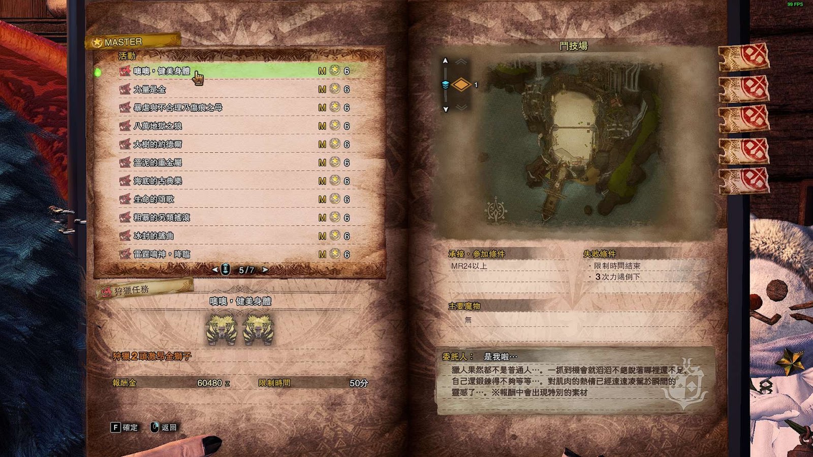 魔物獵人 世界 Iceborne 健美票G獲得方法及用途 18 10 月 2020-10-18 廣告 作者:忤旭v 來源:bilibili 健美票G可以通過完成驚魂夜活動任務“噢噢,健美身體”獲得,任務中需要我們狩獵1只小金激昂金獅子和1只大金激昂金獅子。健美票G的用途是在加工屋生產外觀裝備【健美 γ 】服裝。 健美票G的ID是2765。 任務詳情 任務完成 【健美 γ 】服裝