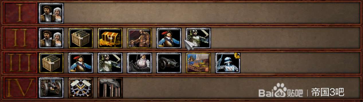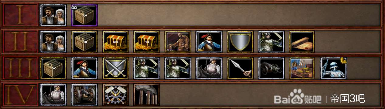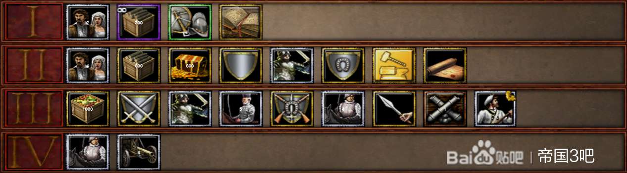 堡壘時代的法國可能會用胸甲散的陣型攻擊你,你可以1000木後發9劍盾手,在保持大約15散兵的情況下把造馬廄出X騎,隨後視情況選擇發12XX或5X騎,基本就可以打一波了。
