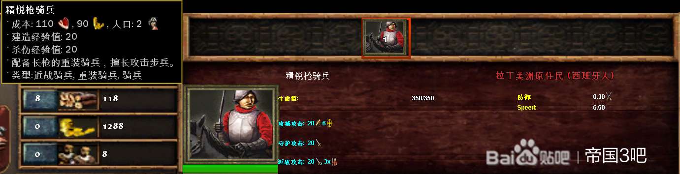 堡壘時代解鎖訓練,克制步兵的重騎兵,這貨屬性稍低,卻對步兵有著天生的三倍克制。並且同時享受四張加強卡和皇家級別的工業升級(相當於額外用400木金換10%血攻)。但儘管如此,如果攻擊對象不是步兵,而是騎兵、炮兵甚至農民,那麼他的價值還不如一個殖民時代的普通輕騎。