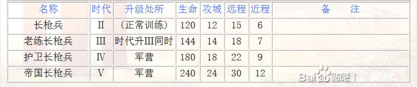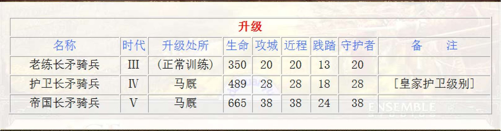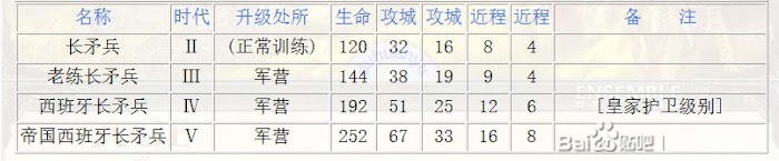 原版除西班牙外,所有長矛手只能升級到精銳等級,但決定版補全了他們的科技樹,可以升到最高級。