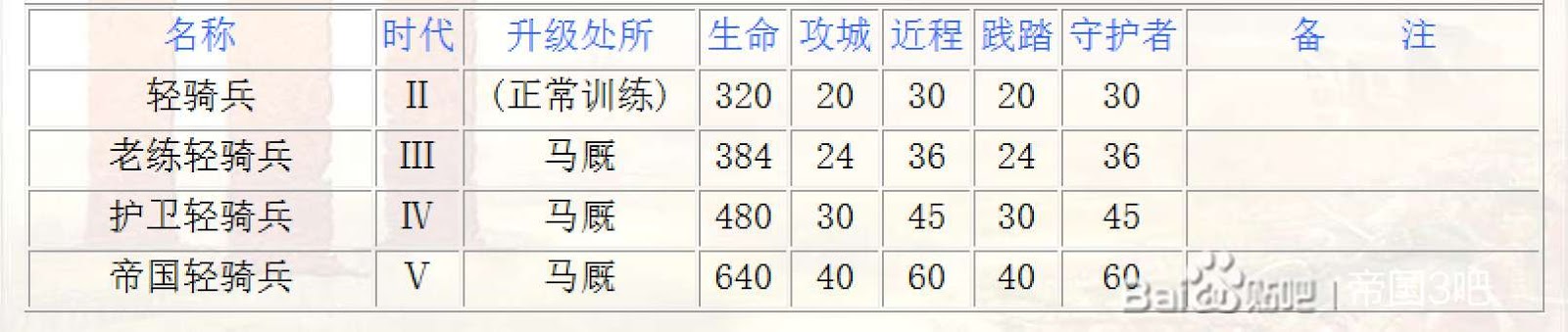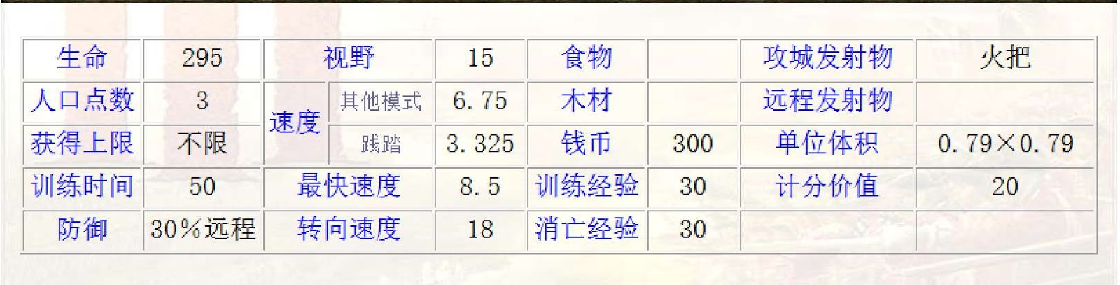 這貨血薄,近戰防禦也是可憐的10%,因此常常會被對手的輕騎強吃。當你發現你的XX數量不比對面騎兵多多少時,就要當心對手騎兵的死亡衝鋒了。