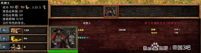 基本上帝國3裡的奶媽都不太好用,但傳教士絕對是其中的一朵奇葩。他的小毛驢能跑出比馬還快的8速度,打卡“聖香油”後可以為其他軍事單位提供5%的攻擊光環(光環類型的加強是在當前屬性上進行的,也就是說兵種等級越高,效果越強),但最多只能出10個。