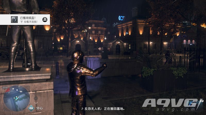 之後強一輛車,儘量找一個稍微偏僻點的未知,隨後下車調出個人菜單(切換武器那欄),PS4版為方向鍵“右”,選擇上方的表演雕塑,之後站在原地不要動,警備隊會對玩家周圍展開搜索,一段時間後就會離開,隨之解鎖成就。