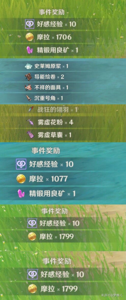 本攻略提供此類委託資源刷取點位、方法以及掉落資源收益情況。除角色親密度外,“緊急委託”類材料皆可在地圖中直接或間接刷取,效率視“緊急委託”觸發成功率以及遊戲載入速度而定,請各位旅行者根據自己實際情況挑選食用。
