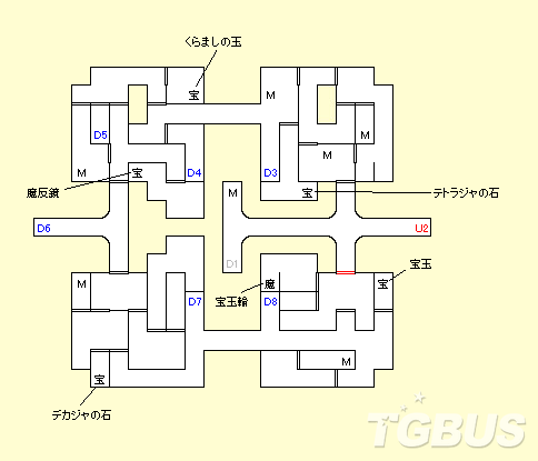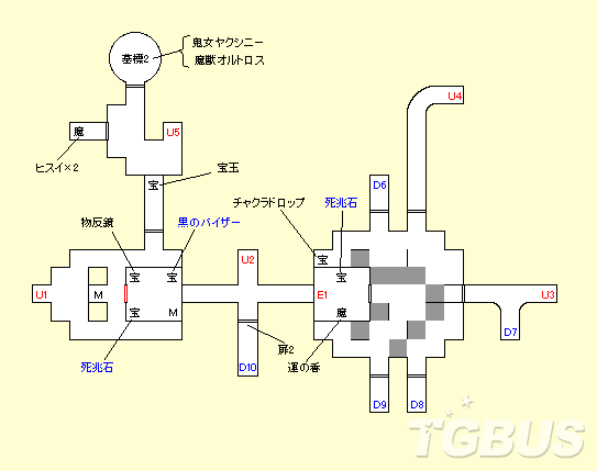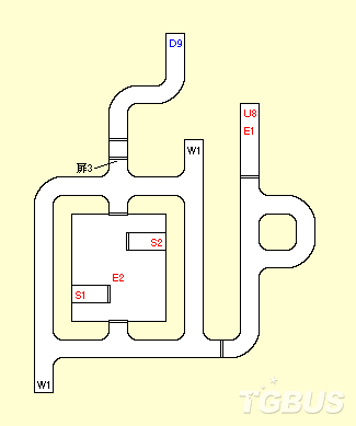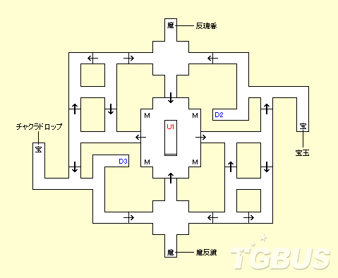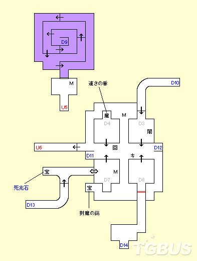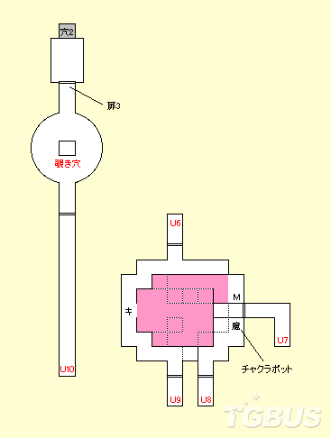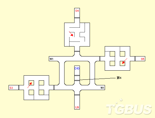 行進路線:1F(D4)→B1F(D6)→B2F(U9)→B1F(E1)操作按鍵→1F(D2)→B1F(D10)→B2F窺洞