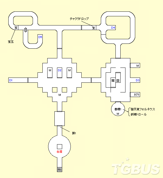 開門後落入洞穴後來到B5F(D7),有一個只能打開3次的門,門內有出售附帶專有技能“貫通”的邪神基力梅卡拉。