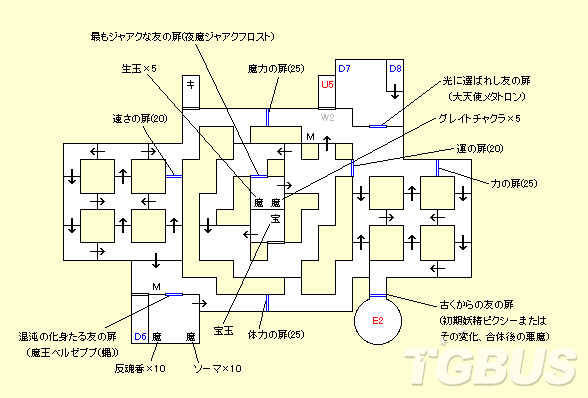 打開各扇門需要達到指定的數值或帶著指定的仲魔