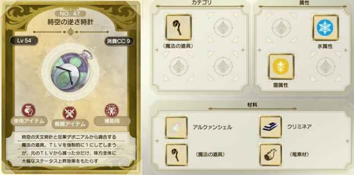 在戰鬥時使用的道具,能夠復活無法戰鬥的角色。由於裝備等級較高,所以能使用的角色僅限於萊莎和柯利弗德等,但也是十分重要的復活手段,推薦使用。