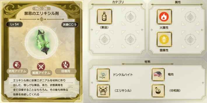 禁忌萬靈藥劑是能夠恢復全部HP、提升能力、持續恢復並且復活無法戰鬥的角色的萬能藥。只要帶1個就能以不變應萬變。