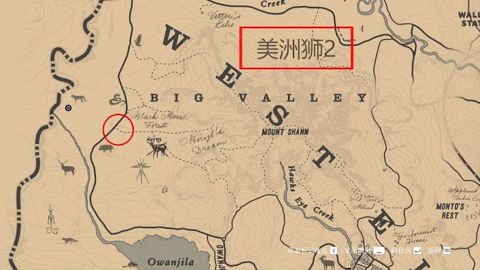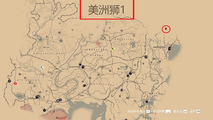 完美的美洲獅皮:草莓鎮左上,安尼斯堡上邊。西邊那個點必刷親測,西邊那個點不用到處找就騎馬或者步行在主幹道上,就在那麼大範圍的找,要麼在河邊喝水,要麼在道路兩旁撲上來咬死你,喜夜行。春田步槍。