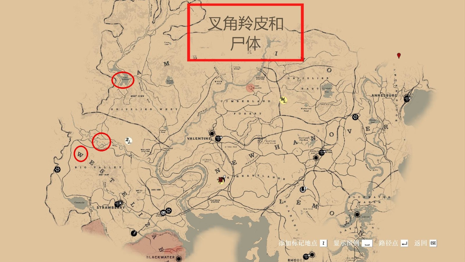 完美的叉角羚屍體:分佈廣,草莓鎮左上,伊薩貝拉湖,這三個點必刷,推薦去草莓鎮左上那幾個點。春田步槍。