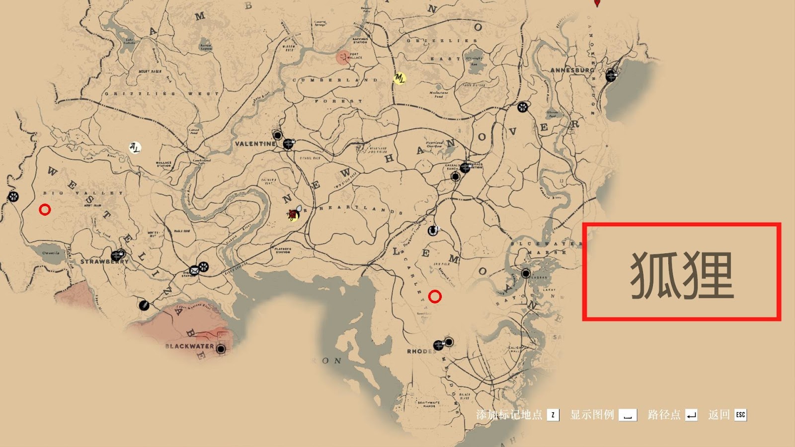 完美的狐皮:分佈廣泛,草莓鎮左邊,羅德鎮上邊,這兩點必刷。春田步槍或捕獵步槍。