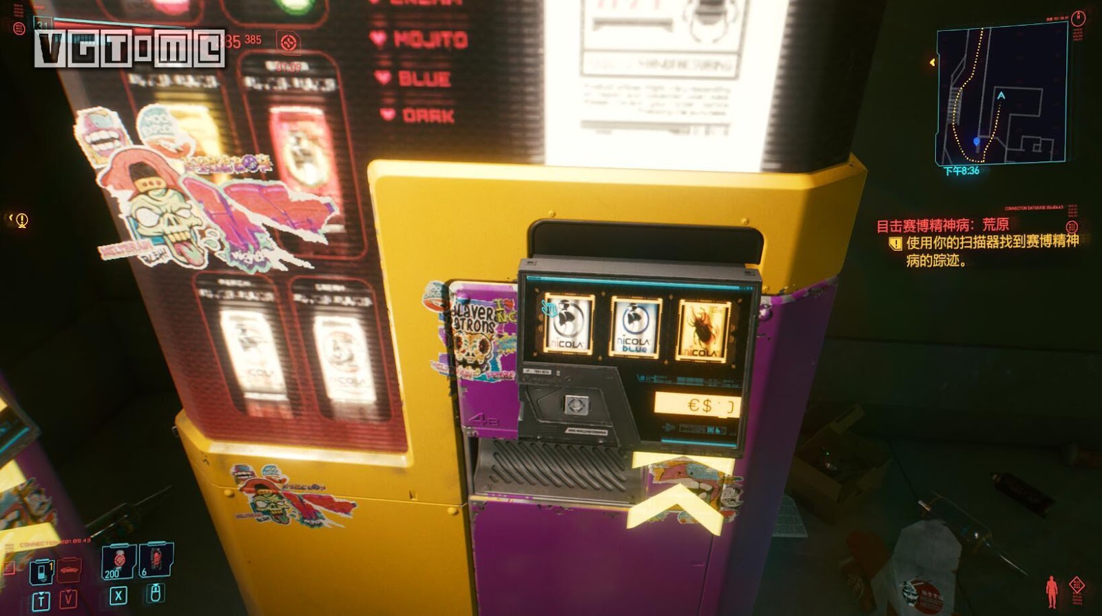 第二步,找到價格為 10 元的自動售貨機(為什麼是 10 元的?因為 5 元的售貨機商品不能拆)。這一步也很容易,在 V 的家出門右轉的拐角就能看到幾台。