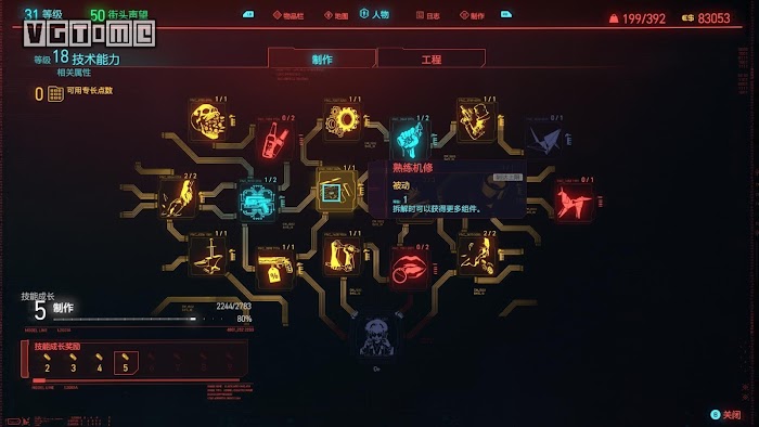 第一步,首先點出製作技能下的“熟練機修”專長。這個專長是初始專長,沒有任何的前置屬性點要求,開局就能點。這項專長能增加玩家拆解物品時獲得的元件數量。