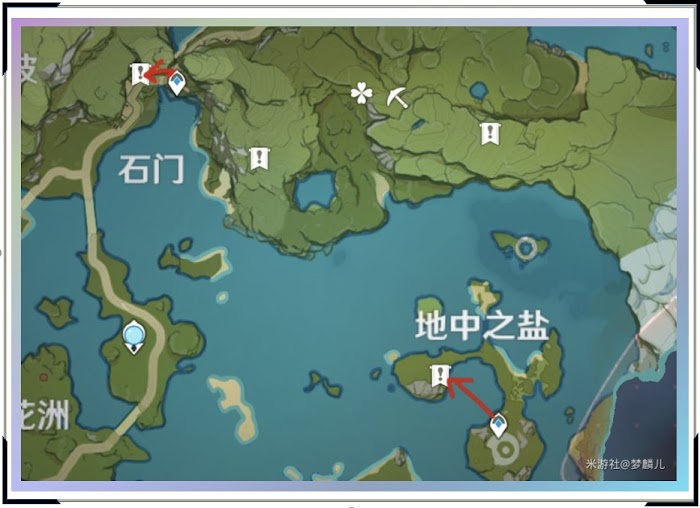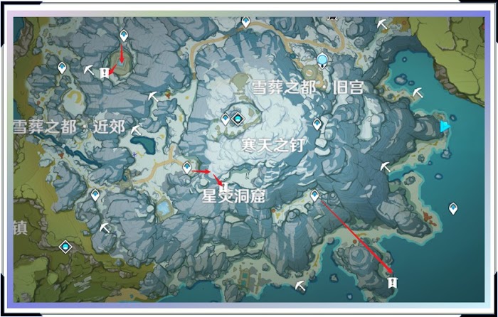 聖遺物材料皆為調查所得,刷新時間分為24小時刷新和12小時刷新,已分別用不同標記區分(旗號標記為24小時,星號標記為12小時,雪山地帶暫未考證12小時但不排除可能)