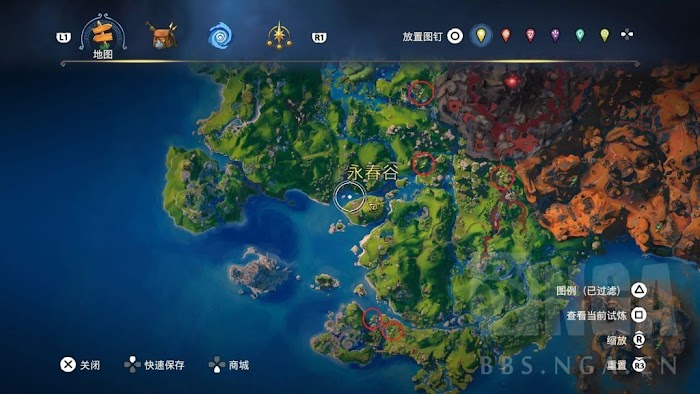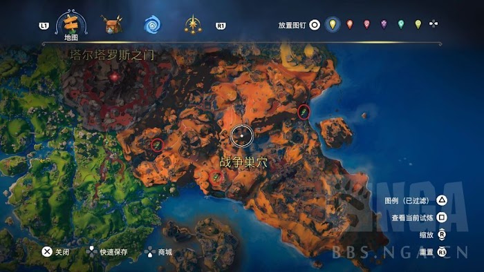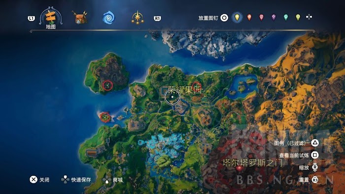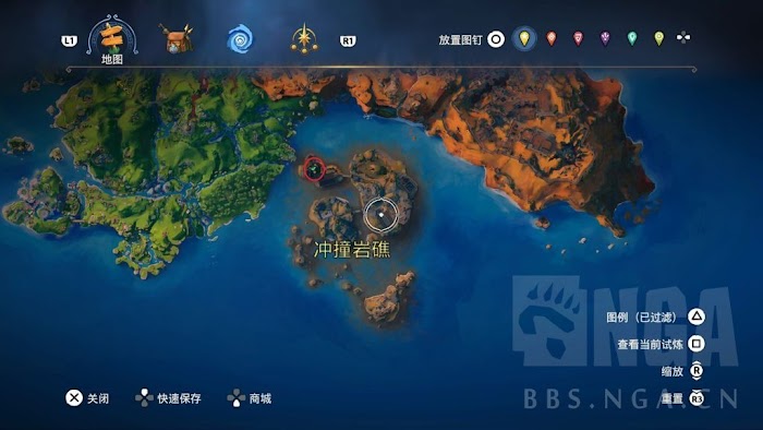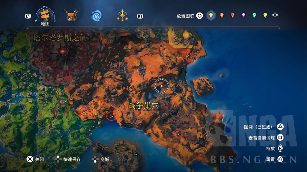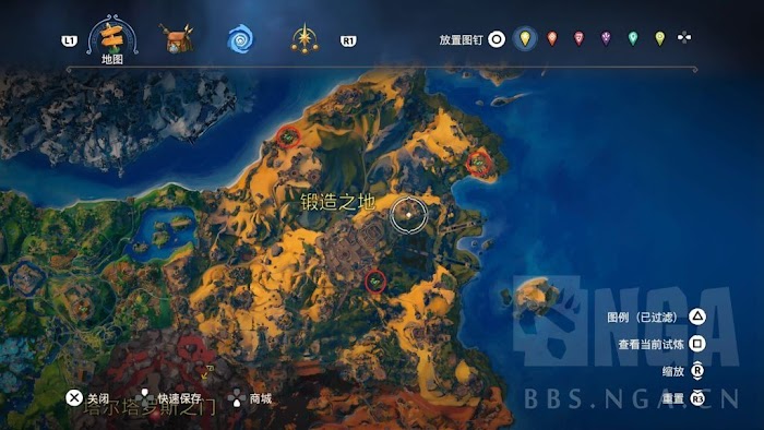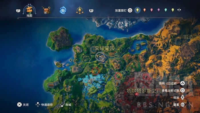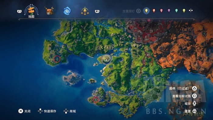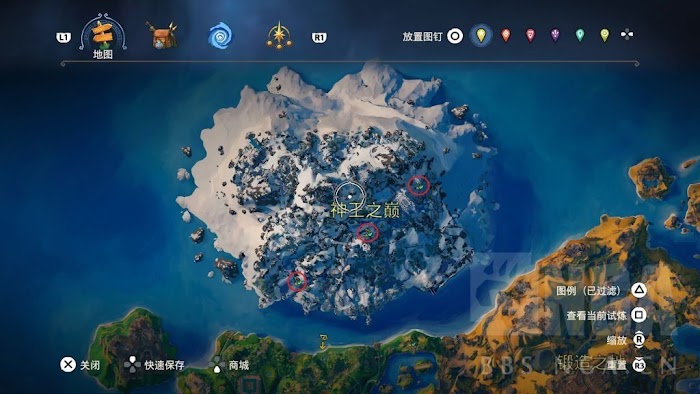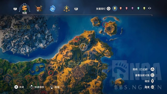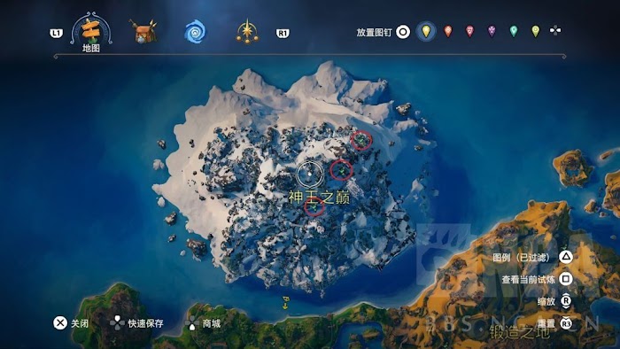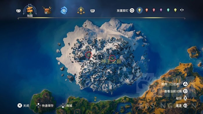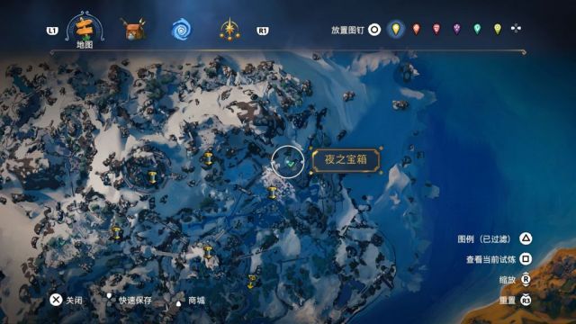 獎盃地圖上的藍色標記點。神王之巔右邊的夜之寶箱有錯誤。