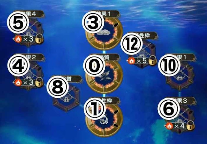 影響擴大+1:投入材料環時,材料的屬性值也會影響後1個。指定特殊材料的材料環不受影響
