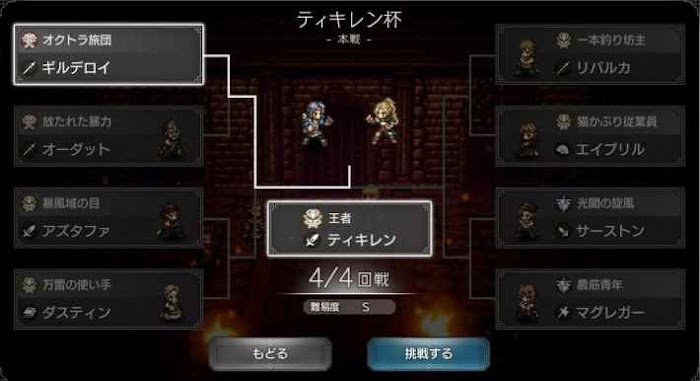 完成支線後,阿德魯亞會成為鬥技大會的接待人,在競技場與阿德魯亞對話就能參加鬥技大會。現在正在舉辦第1次鬥技大會緹琪蓮杯(ティキレン杯)