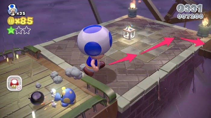 超級瑪利歐 3D 世界 狂怒世界 流程攻略-世界10-6 22 2 月 2021-02-22 廣告 來源:TGBUS 【世界10-6的推薦角色和道具】 任意角色皆可。 ·出現道具一覽 巨大蘑菇、1up蘑菇 【世界10-6的綠色星星所在地點】 1、起點後的綠色星星圈 第一顆綠色星星在起點之後的綠色星星圈,通關機關即可獲得。 2、傳送方塊右側深處的通路前方 3、傳送後的窄路較高處 第三顆綠色星星在渡船經過傳送後的狹窄路徑後,前方的較高處。在巨大化後跳躍就可獲得。
