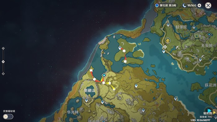 這裡可以逮2只晶蝶,但是有很多夜泊石,鐘離就派上用場了