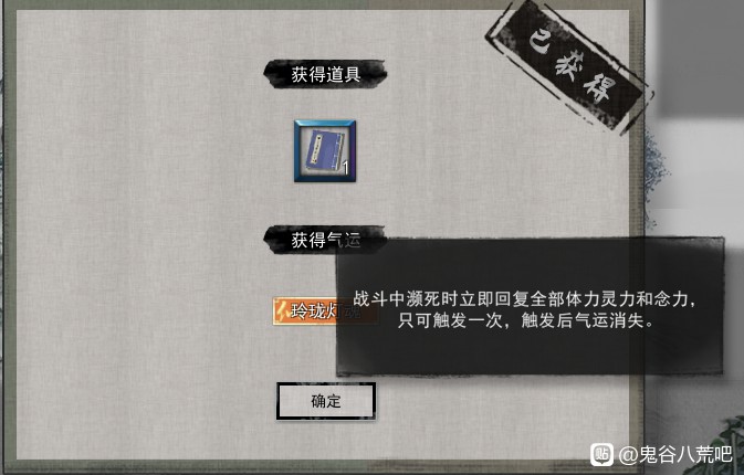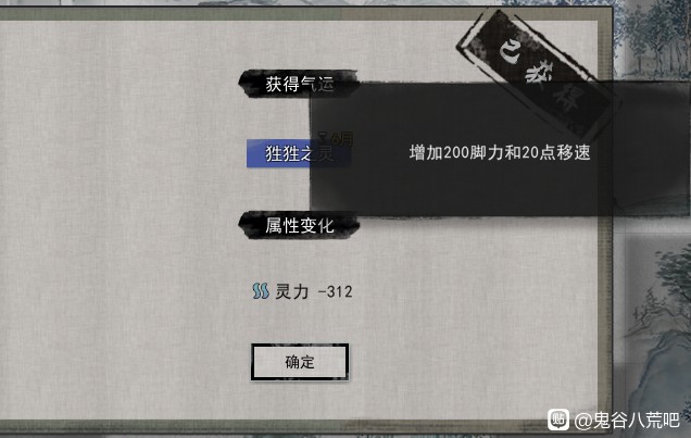 選擇第二個之後選姑且一試,會得到後天氣運【狌狌之靈】持續6個月,效果如下