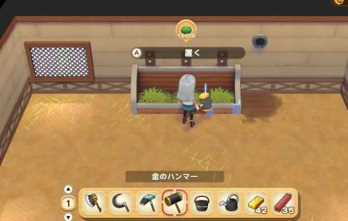 牧場物語 橄欖鎮與希望的大地 喂飼料的方法 4 3 月 2021-03-04 廣告 來源:TGBUS 【喂飼料的方法】 ·獲得乾草飼料 1、種植牧草苗 2、在雜貨屋中購買 首先需要獲得乾草飼料,如果想要效率較高的獲得,推薦方法就是直接去雜貨屋購買。 ·在小屋中放置乾草飼料 購買乾草飼料後,放入小屋中,裡面有個專門供飼料用的地點。到第二天的AM9:00,系統會自動消耗乾草飼料。 ·如果乾草飼料不足,動物會不高興 如果乾草飼料一直沒有,進入小屋的動物就會不高興。飼料不足就及時補充,動物的興致也會提高。