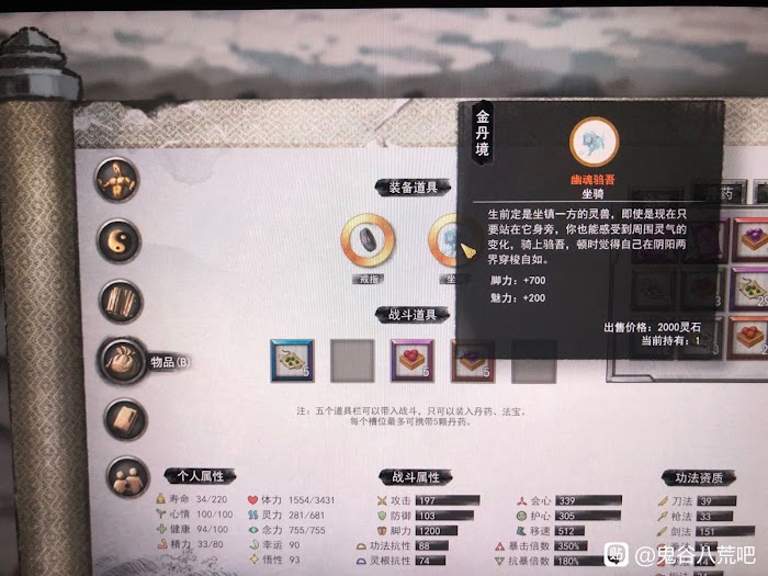 鬼谷八荒 玲瓏魂燈奇遇各選項獎勵一覽 7 3 月 2021-03-07 廣告 作者:NPC咖啡 來源:鬼谷八荒吧 幫鬼夫人和老祖都可以開始藏寶圖(幫老祖老祖會說冤魂吸取普通男子精元,他雖然是魔道但是為了奪寶屠滅這個宗門也算做了正道之事) 藏寶圖選項 1.符文:靈根資質各加15 2.鬼帆:3次空血5秒無敵狀態祝福 3.骨頭:下圖中的坐騎,很帥!(跟境界有關,我金丹給的金丹坐騎) 4.保留鬼燈給戰鬥中一次重生祝福。