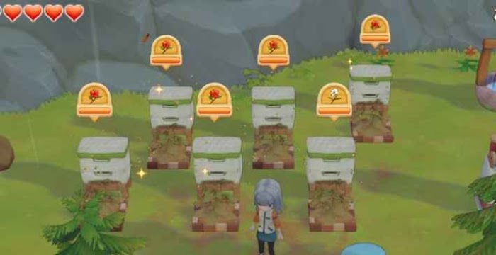 在養蜂箱中放入花朵,4日後就可以收穫巢蜜了。放入不同的花朵可以收貨不同的巢蜜。花朵有它們各自的花期,所以如果手頭沒有相應季節的花朵在養殖的時候就要小心。