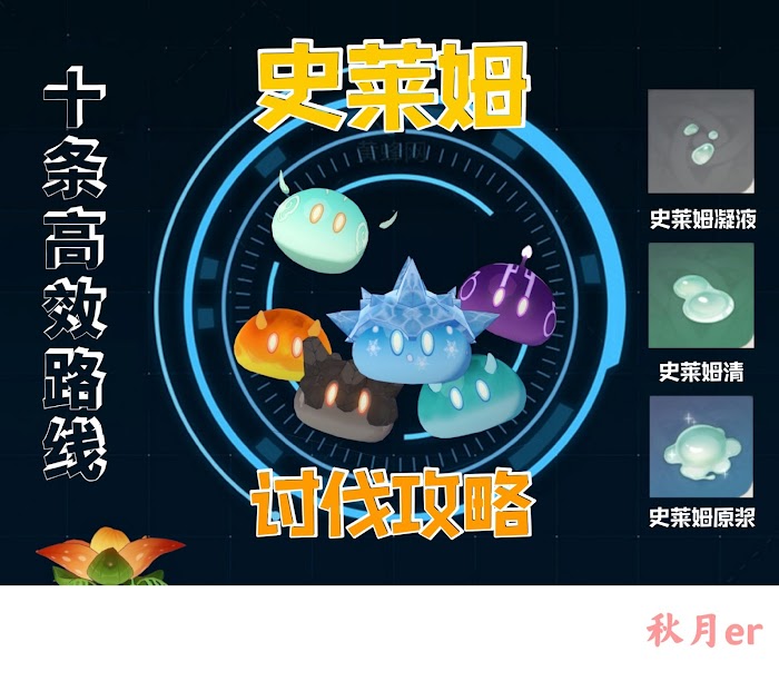 『史萊姆』掉落物 “史萊姆凝液”(全部等級)、“史萊姆清”(40級以上)和 “史萊姆原漿”(60級以上)是角色和武器突破素材。