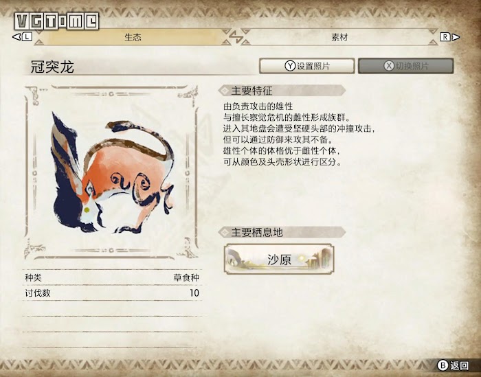 冠突龍在沙原還算常見,一般在 5 區水域可以找到,數量不夠的話可以退出自由探索任務重進反復刷。